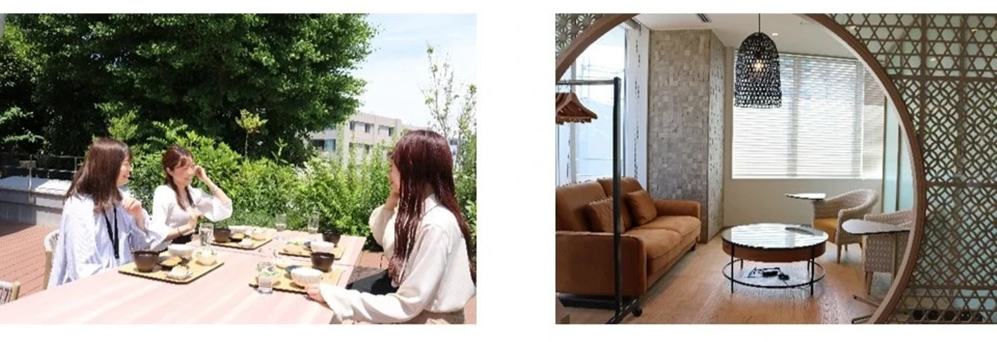 大阪オフィスと同様に、開放的なワンフロアの執務室で、社員同士のコミュニケーションが取りやすい環境です。また、同じフロアには、共通の休憩スペースを使うグループ会社のオフィスもあるので、一緒にランチタイムを楽しむことも可能です。そのため、グループ会社間の横断的な交流も生まれやすい環境になっています。