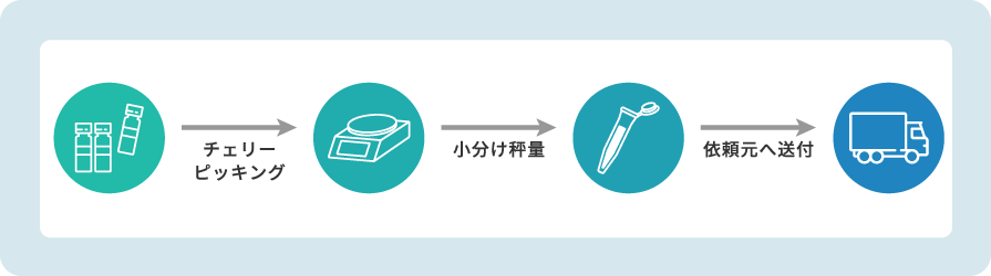 - 共同研究および委託試験用の秤量、チューブ・プレート作製を行い、アカデミア等へ払い出します。